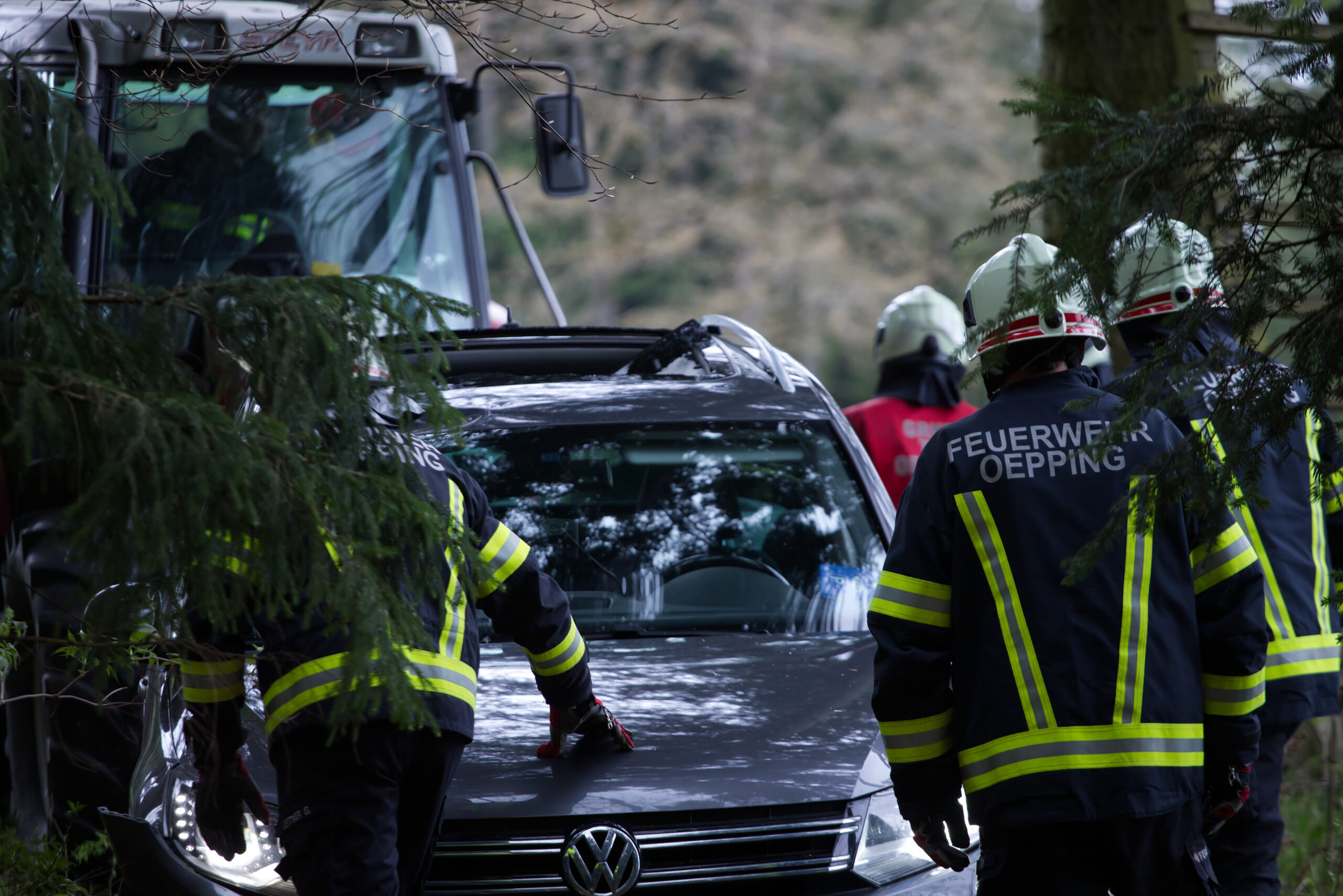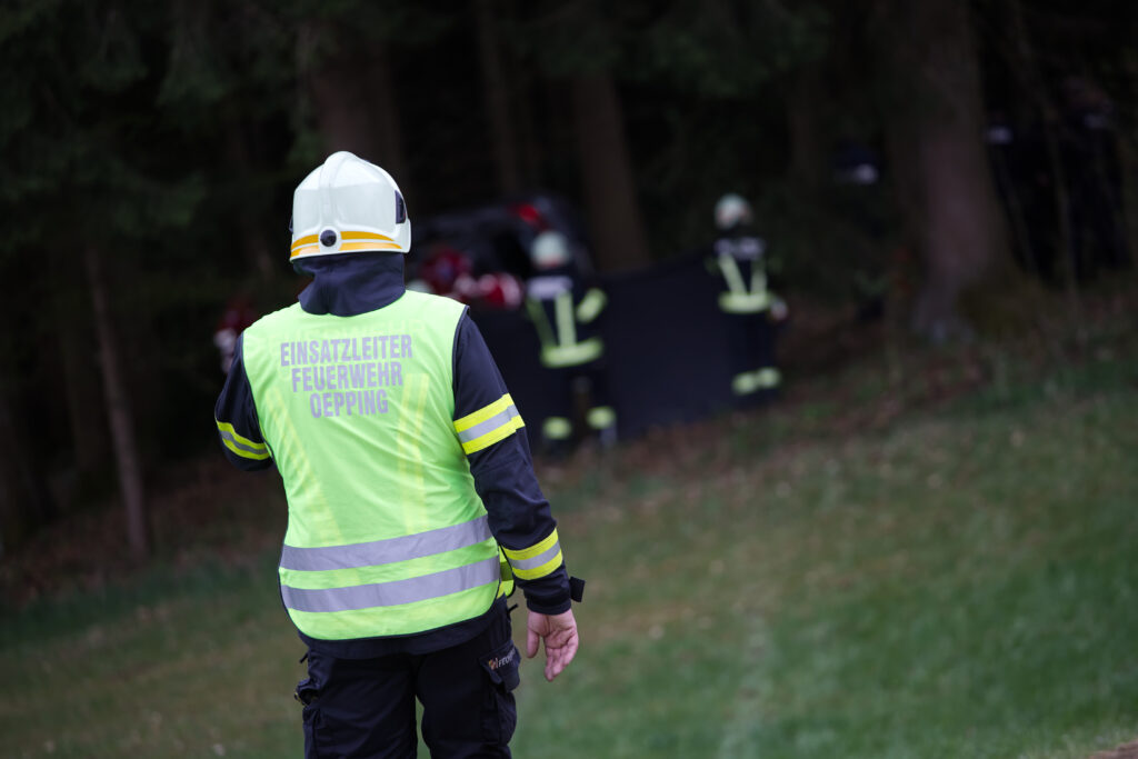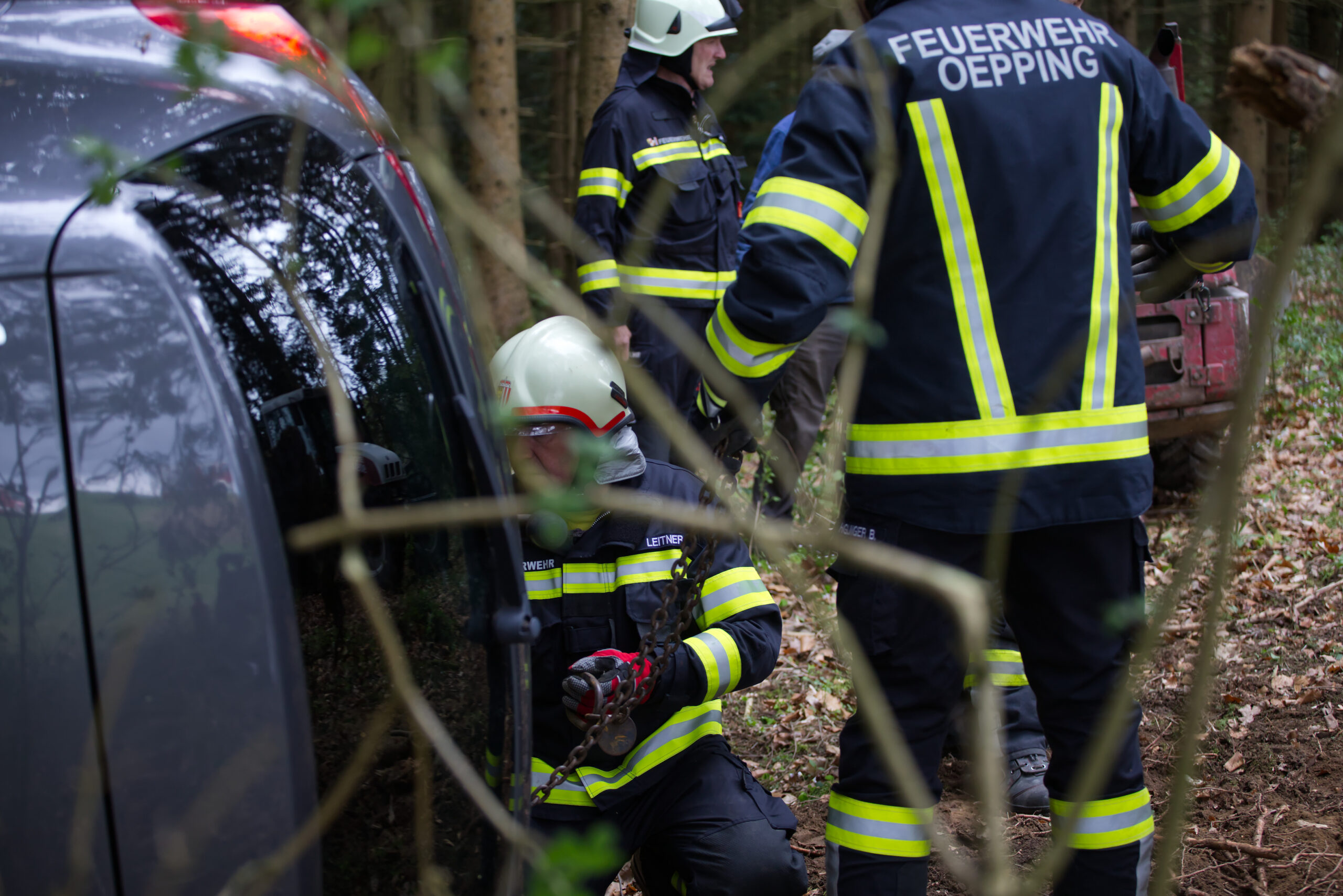 Im Anschluss erfolgte die Bergung des Unfallfahrzeuges. Dieses wurde mithilfe eines Traktors aus dem Waldstück zurück auf die Fahrbahn gezogen und anschließend dem Abschleppdienst übergeben.