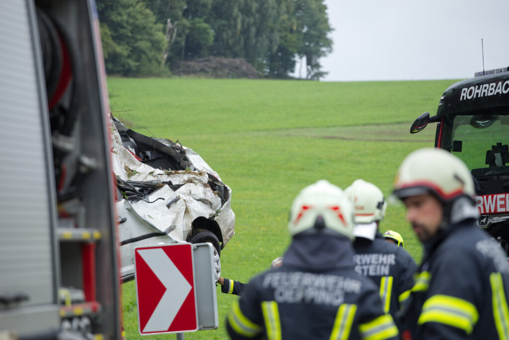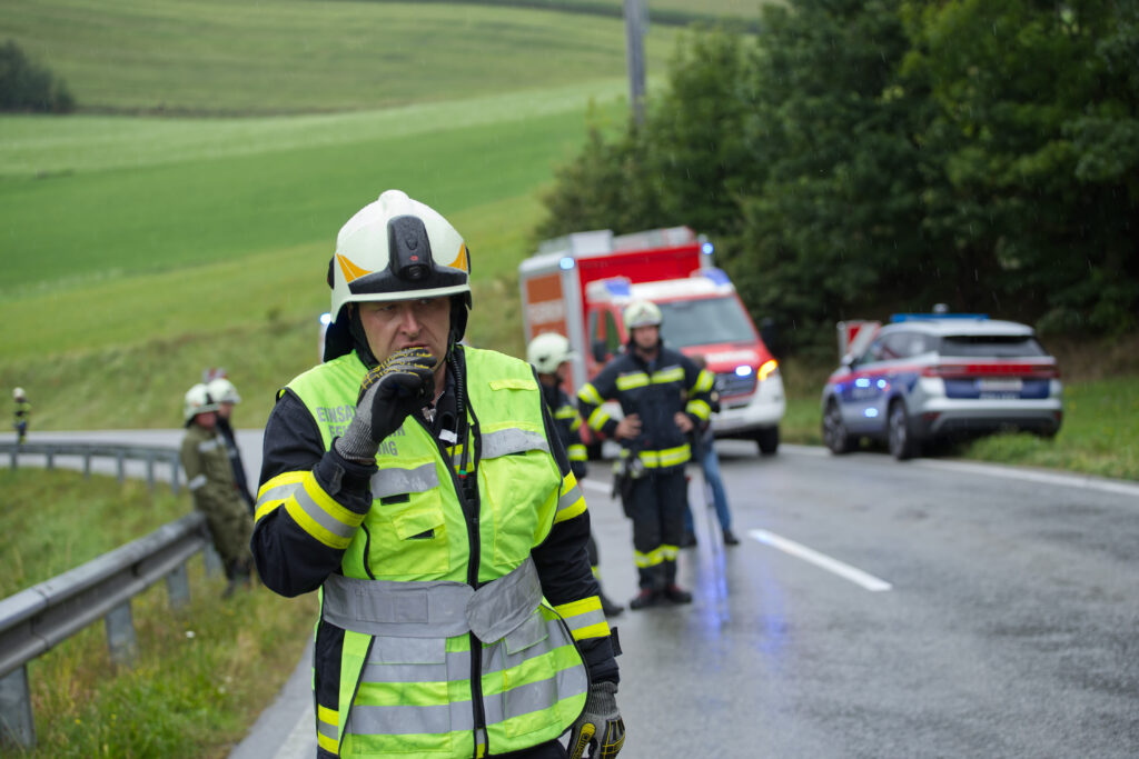 Um 13.10 Uhr am Mittwoch, den 10. September 2025 wurden die Feuerwehren Peilstein und Oepping zu einem Verkehrsunfall mit Personenrettung in der sogenannten Grafenederkurve auf der B38 alarmiert.